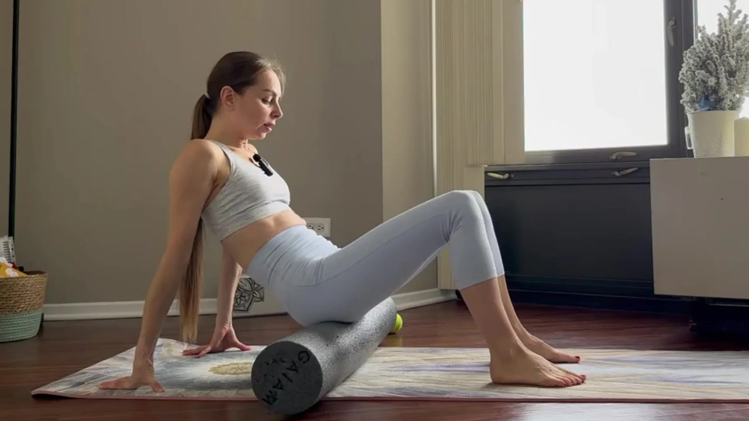 0:45 Упражнения в положении сидя на ролле