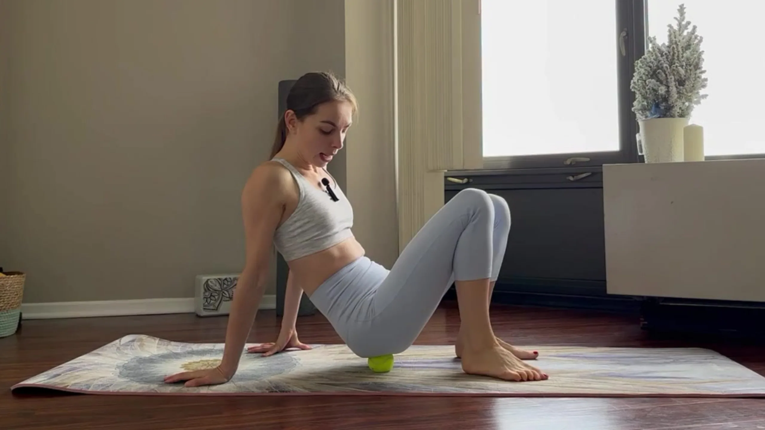 6:11 Упражнения сидя, прокатываем мячик в области ягодиц
