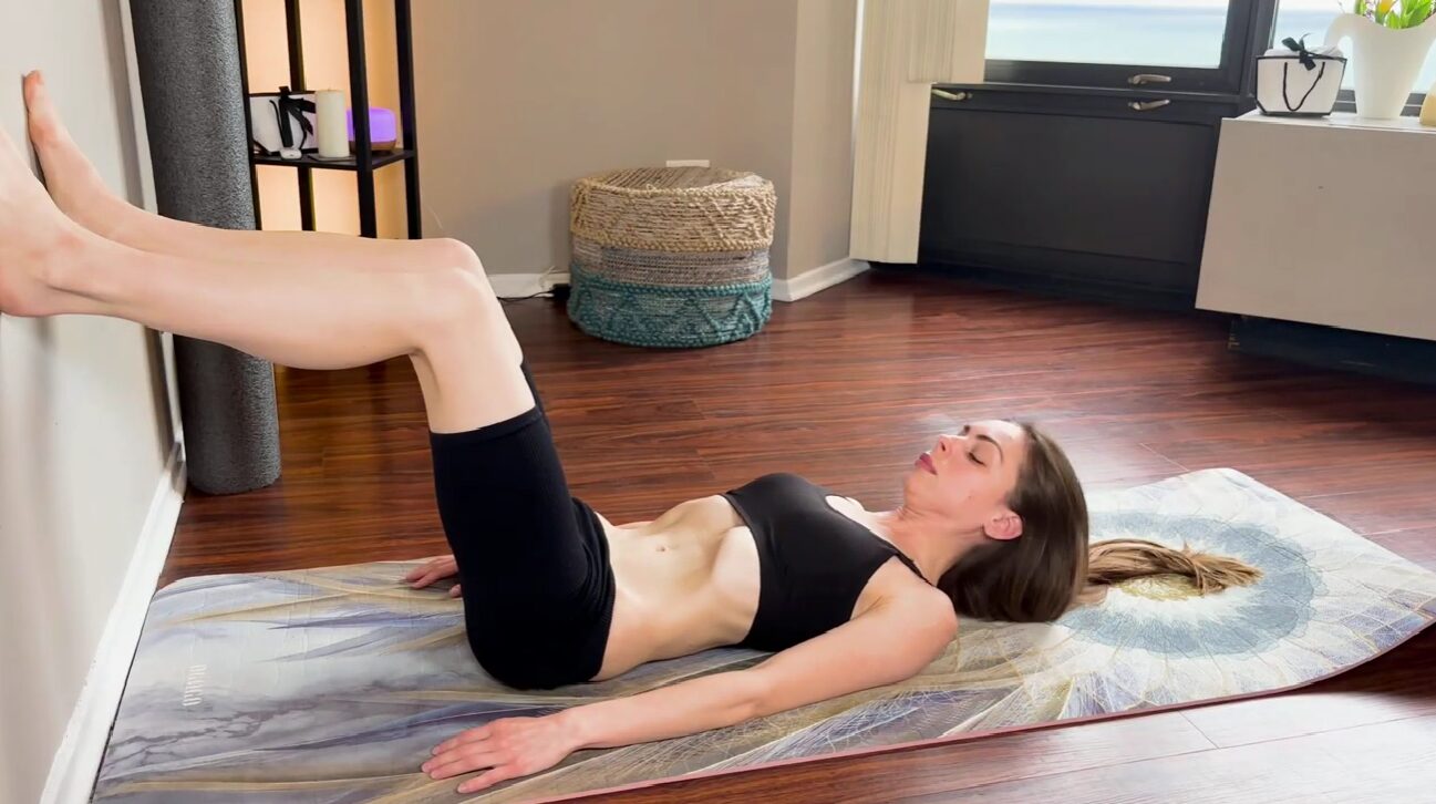 Сжатие одних мышц и освобождение других будет называться Наули. Техника выполнения лягте на спину, стопами к стене, поставить ноги на ширину плеч, в середину бедер можно упереться кистями рук. Делаем глубокий вдох животом и выдох, после выдоха выполняем наиболее глубокую Уддияна Бандху.