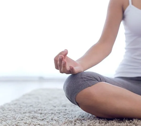 2.Сядьте на пол, ноги согните в коленях, руки поставьте назад и разверните ладони вперед под 45 градусов, затем провалитесь между лопаток. Вдохните назад в спину и почувствуйте, как она растянулась.